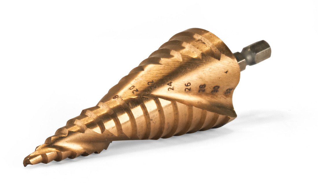 Свердло ступінчате призначене для центрування, свердління (із кроком 2 мм) і зняття фаски за один прохід у листових матеріалах. Покриття робочої поверхні нітридом титану надає свердлам додаткову міцність і довговічність