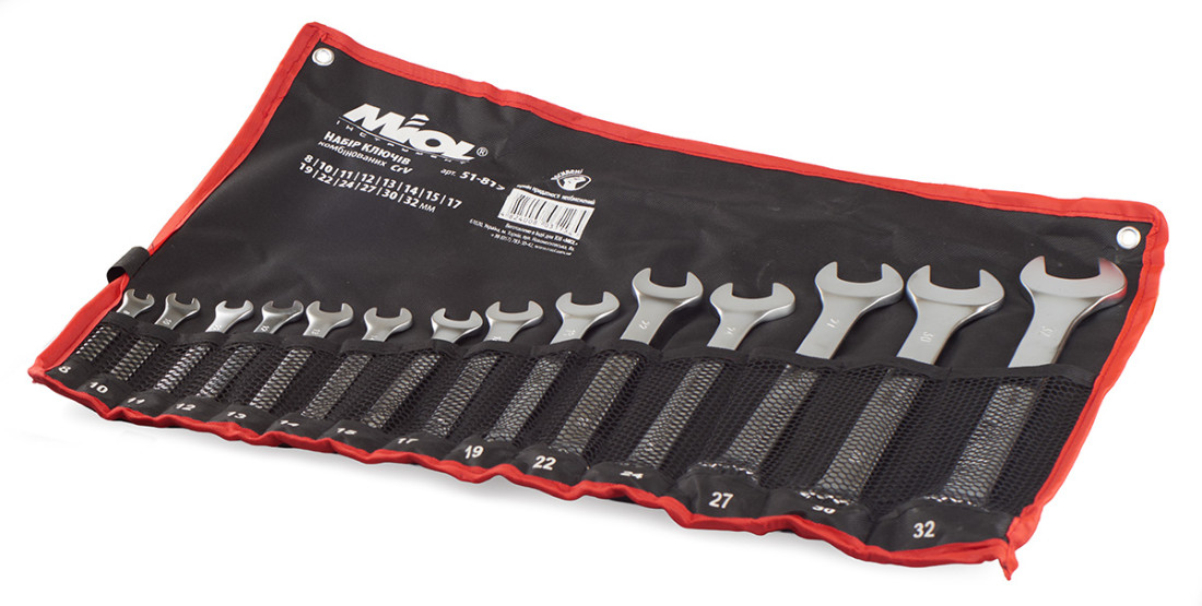 - Набір рожково-накидних ключів (14 шт, 8–32 мм, CrV) Miol 51-817