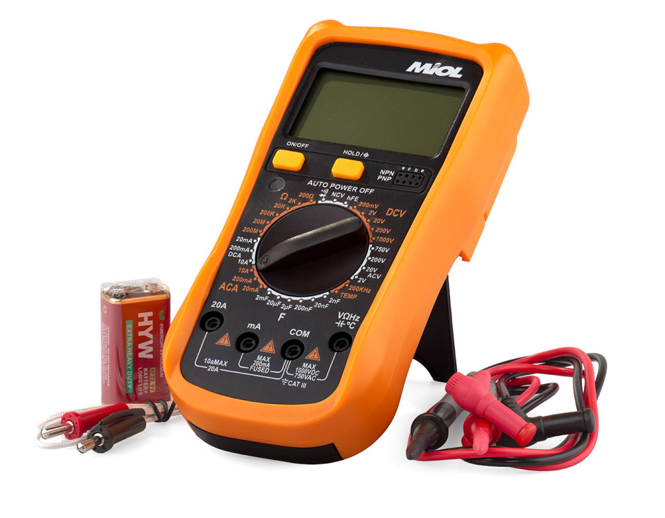 Цифровий мультиметр — це надійний та зручний вимірювальний прилад, призначений для вимірювання основних електричних параметрів: напруги, струму, опору, а також для перевірки діодів і цілісності ланцюгів (прозвону). Завдяки великому РК-дисплею та автоматичним функціям індикації, прилад простий у використанні як для побутових потреб, так і для професійних робіт з електронікою.