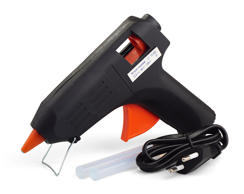 Ергономічна форма корпусу та зручний курок дозволяють комфортно працювати навіть протягом тривалого часу. Модель розрахована на стандартні клейові стрижні діаметром 11,2 мм, що робить пістолет універсальним і практичним рішенням для дому та майстерні.
