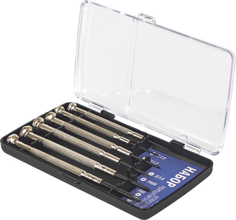 Набор отверток с профилями «шлиц» SL и «крест» PH предназначен для прецизионных ремонтных работ изделий с малыми винтовыми соединениями и включает в себя основные типоразмеры (6 шт.)
