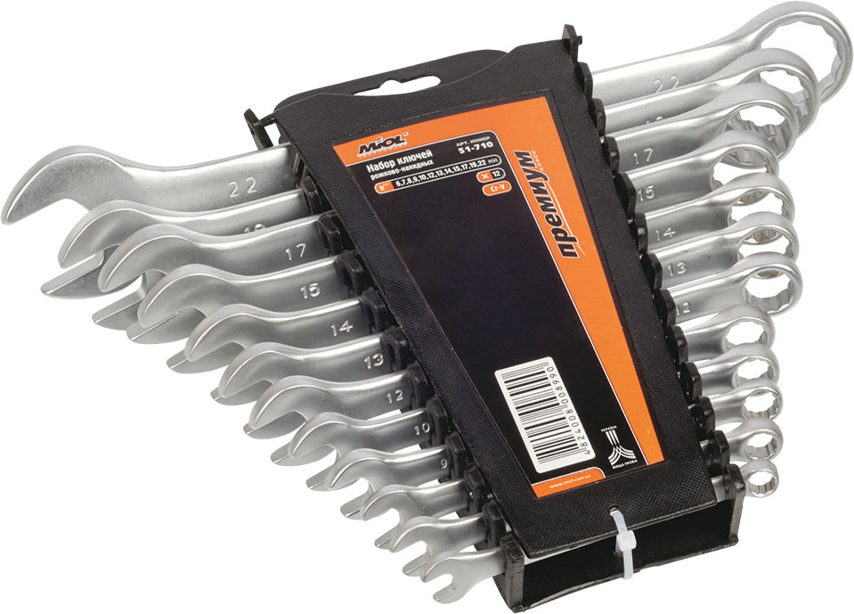 - Набор рожково-накидных ключей (12 шт., 6–22 мм, CrV) Miol 51-811